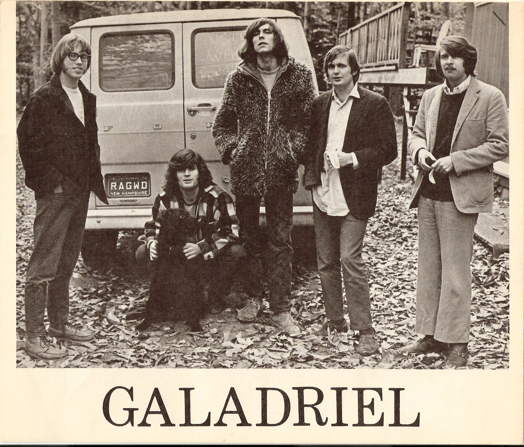 Galadriel–originally named Ragweed and later changed to Fred (?)– consisted of (l to r) Dave Cross ’69 (drums), Andy Raymond ’69 (bass⁄vocals), Oliver Hess ’71 (guitar), John Maxfield ’68 (piano⁄organ⁄trumpet⁄vocals), and Peter Christenson ’68 (trumpet⁄harmonica⁄vocals)